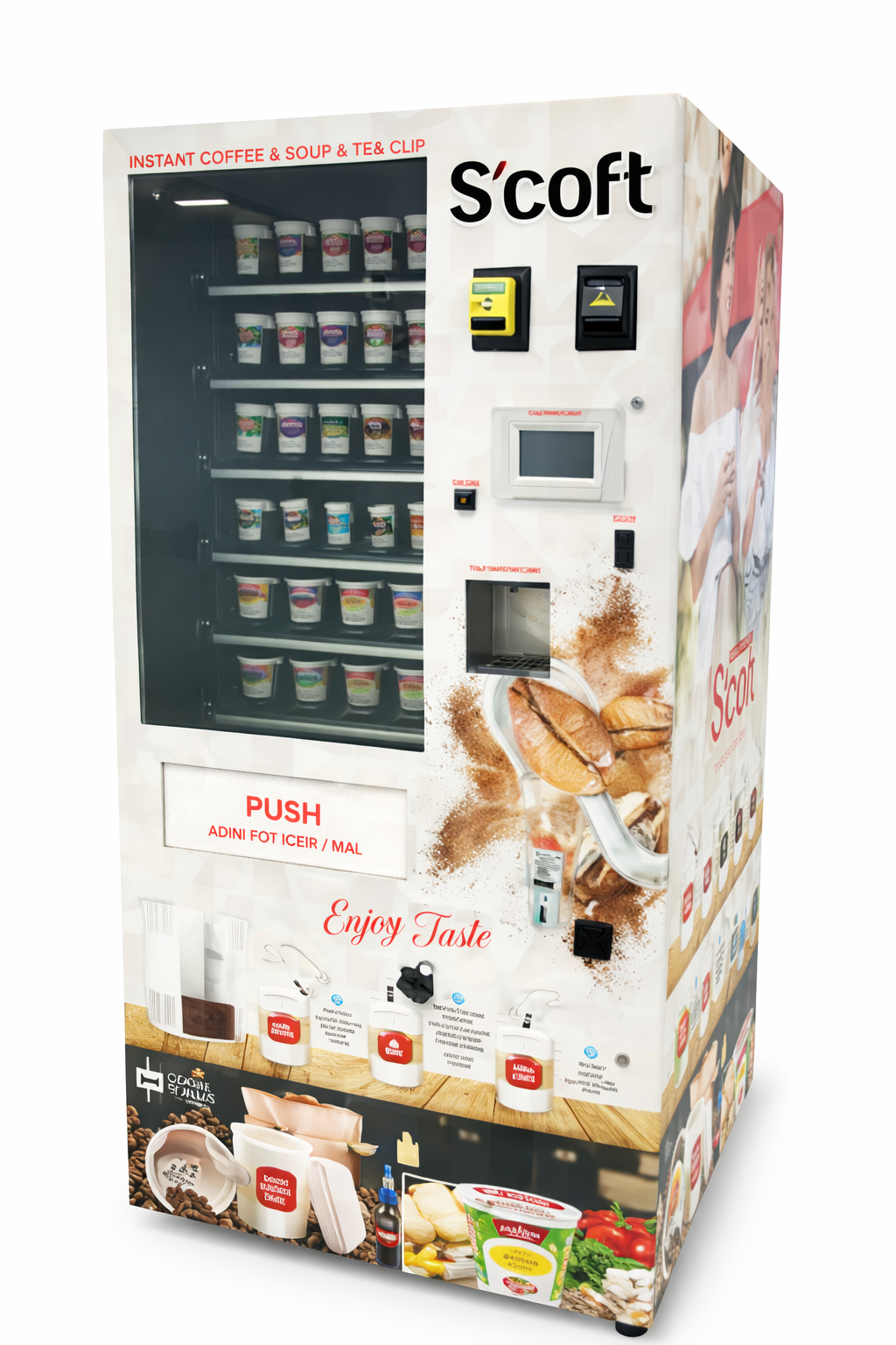 - Instant Product Preparation Machine: Ensures fast and homogeneous preparation of powdered products (coffee, soup, beverages, etc.). Fully compliant with hygiene standards and highly precise in dosing.